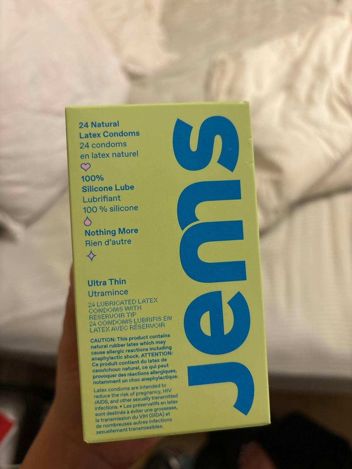 I first received samples of Jems condoms as a promotional sampler as someone who works in sexual health and education. I tried a few myself, as well as sharing them with clients, and have been hooked ever since. The lubricant is slippery not sticky, the fit secure, and they support pleasure and connection for all partners. Because of my jobs I've had steady access to free safer sex supplies for over a decade but have started buying condoms again because Jems are just that good!