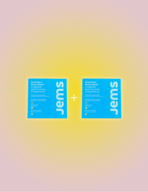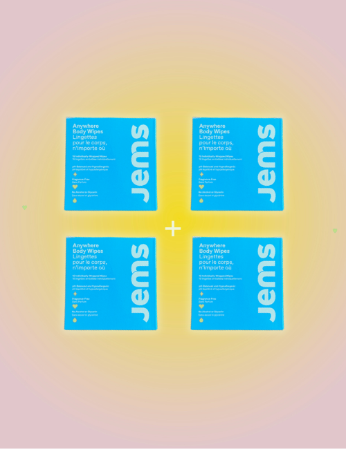 Jems on-the-go intimate cleansing wipes are perfect before and after sex, after a workout, or anytime things get a little... steamy.