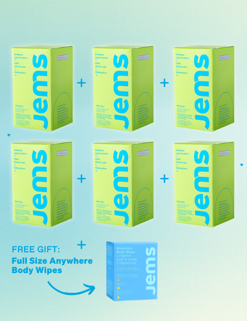 Latex allergies are rare (under 1% of people, per the Asthma & Allergy Foundation of America). If you’re allergic, avoid latex products, including condoms. Jems is currently latex-only, but a non-latex option is on our roadmap…stay tuned!